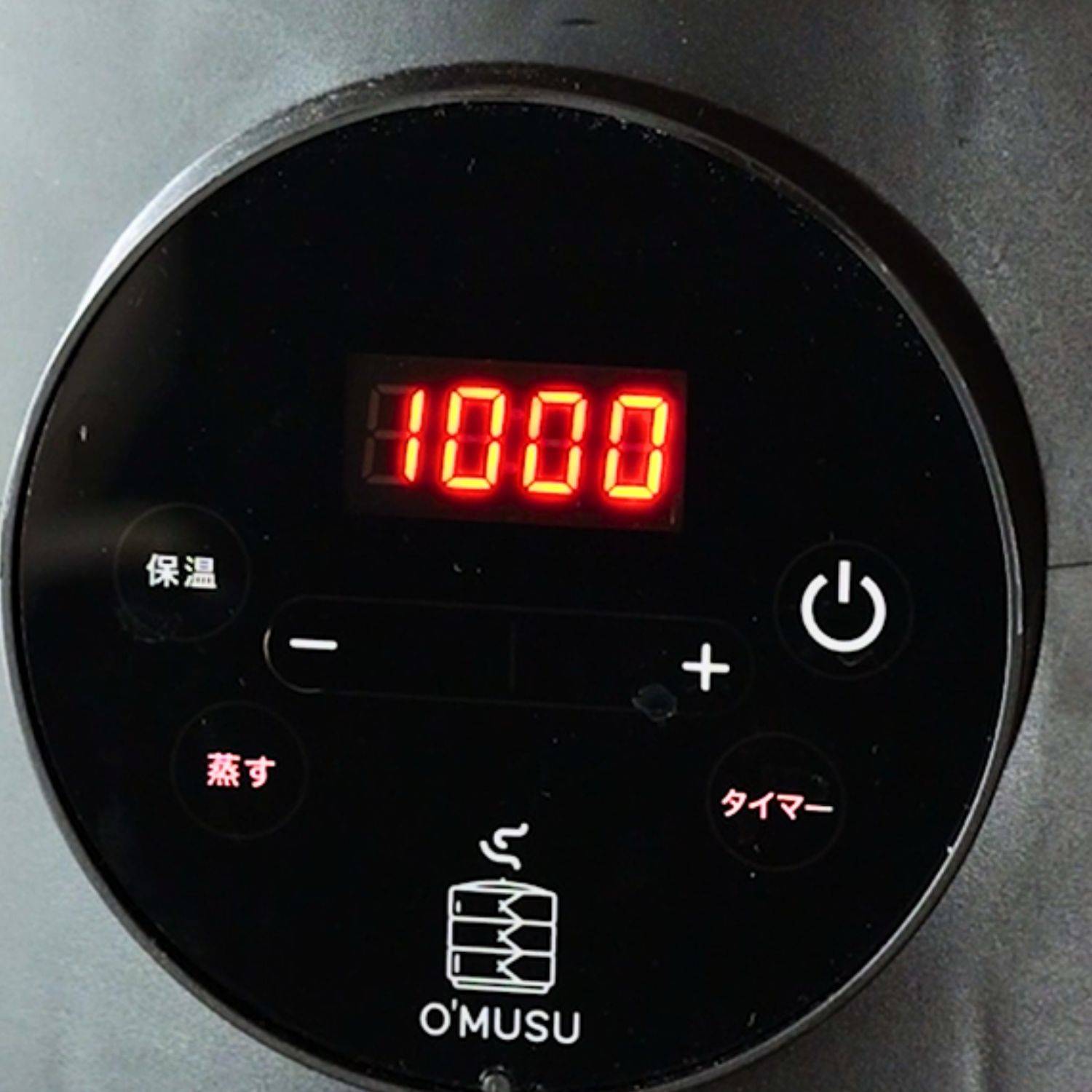 しっかりと蒸気が上がったO’MUSUにのせ、1000Wで40分蒸す。