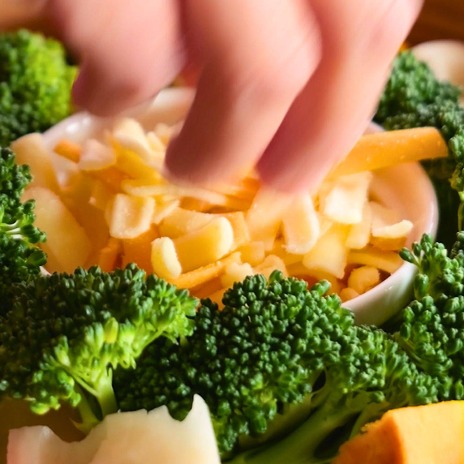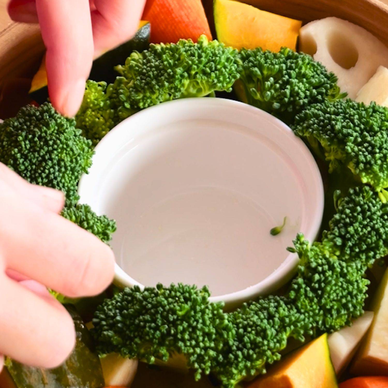 ココットに沿うように、小房に分けたブロッコリーを並べる。