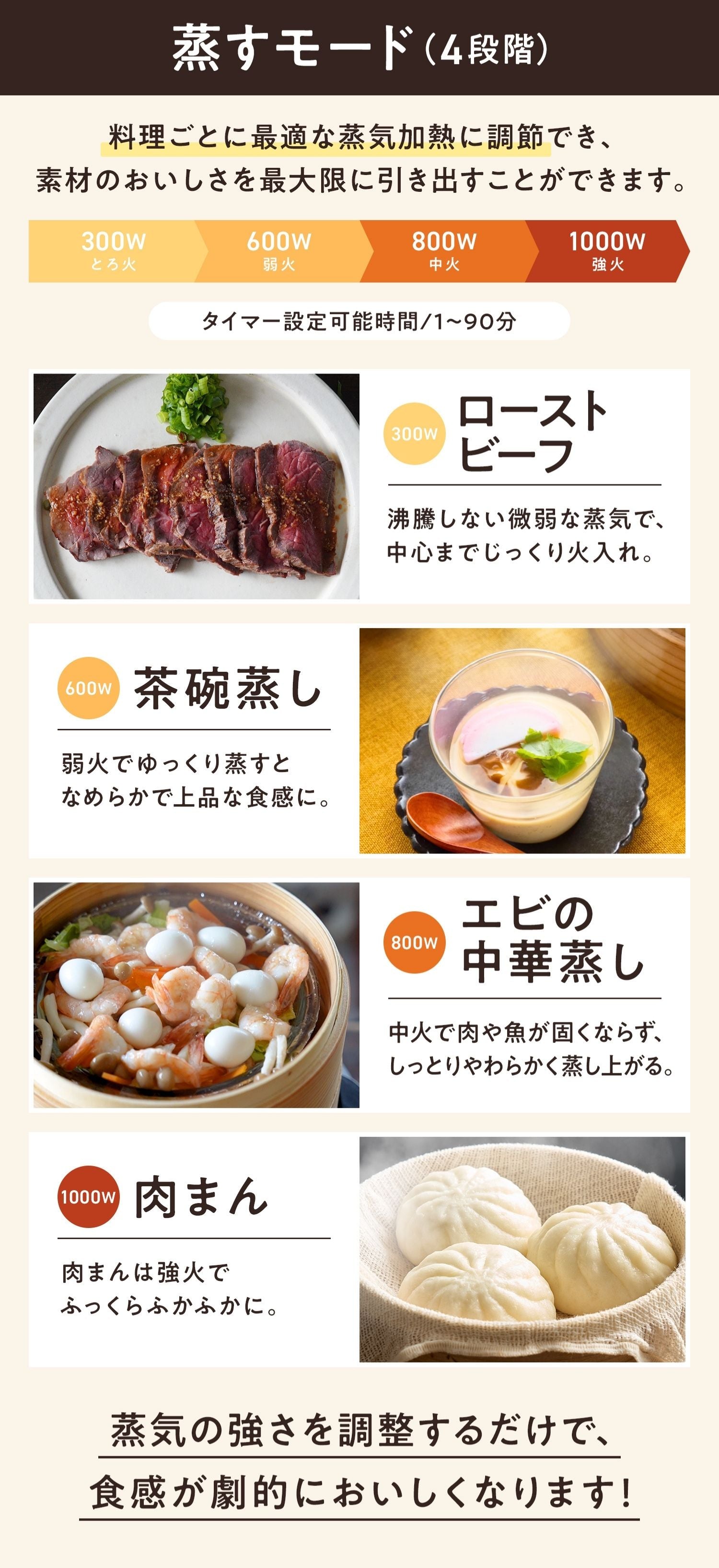 タッチパネル操作で、誰でも簡単に本格蒸し料理を作ることができます。